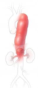 TAAA is an enlargement or ballooning in the aorta, the main artery in the body that supplies blood to the rest of the body. TAAA occurs in the thoracic aorta, the upper section of the aorta close to the heart and chest, and extends into abdominal aorta. If left untreated, the aneurysm can rupture, leading to severe pain and lethal internal bleeding.