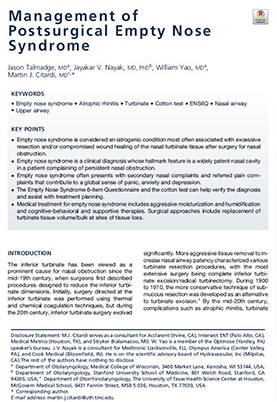 Jason Talmadge, MD and Martin J. Citardi, MD (both from UTHealth Houston) partnered from Jayakar Nayak, MD (Stanford University) in a peer-reviewed review article on Empty Nose Syndrome. In this article, which was published in Facial Plastic Surgery Clinics of North America, they highlight 5 important points: