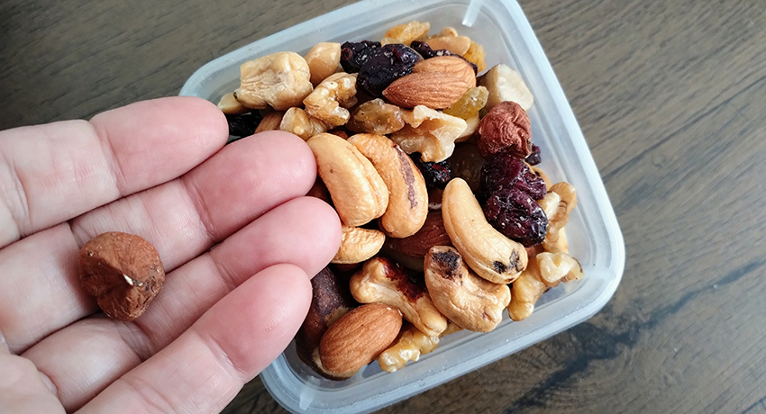 - Trail mix (homemade with dried fruit and dark chocolate)