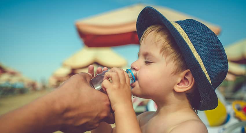 During hot temperatures, you need to drink fluids often and frequently. “Don’t wait until you are thirsty to drink,” explains Murphy. “You should avoid drinks with caffeine and alcohol since they can dehydrate your body even more.”