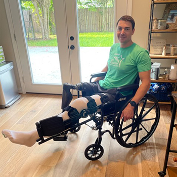 “Our conversation about treatment was more in-depth because of his limitations after surgery,” said Flores, assistant professor of orthopedic surgery at McGovern Medical School at UTHealth Houston. “He didn’t have a ‘normal’ opposing leg to rely on after surgery with six weeks of non-weight-bearing recovery. We talked through the dynamics of aftercare to create a plan for daily life after surgery.”