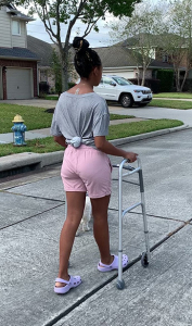 After three days in the hospital, Kylah was discharged with a walker to use and strict limitations on twisting, lifting, and bending. She couldn’t turn her neck.