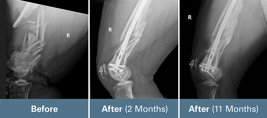 “His joint surface was broken into many pieces, and it was difficult to reconstruct that, put it back together, and secure it in such a way that it doesn’t interfere with long-term function,” Tinubu said. “And then everything had to be properly aligned so his leg would be the same length, the appropriate rotation, and held in place until the body could heal.”