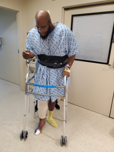 Johnny initially received care at a regional hospital, but because his injuries were so extensive, the trauma director contacted Jide Tinubu, MD, an orthopedic trauma surgeon at UT Physicians, and asked to transfer Johnny to a hospital in The Woodlands.